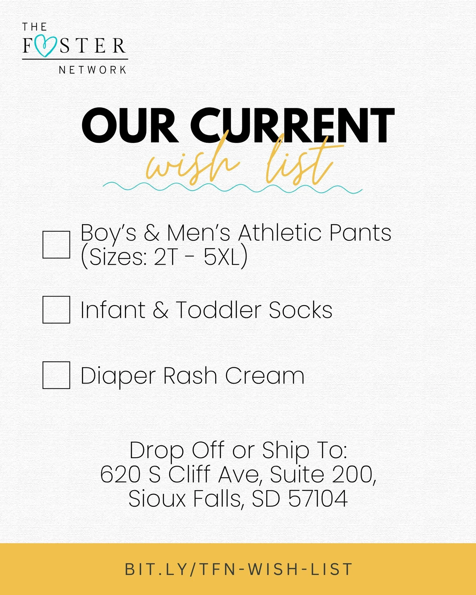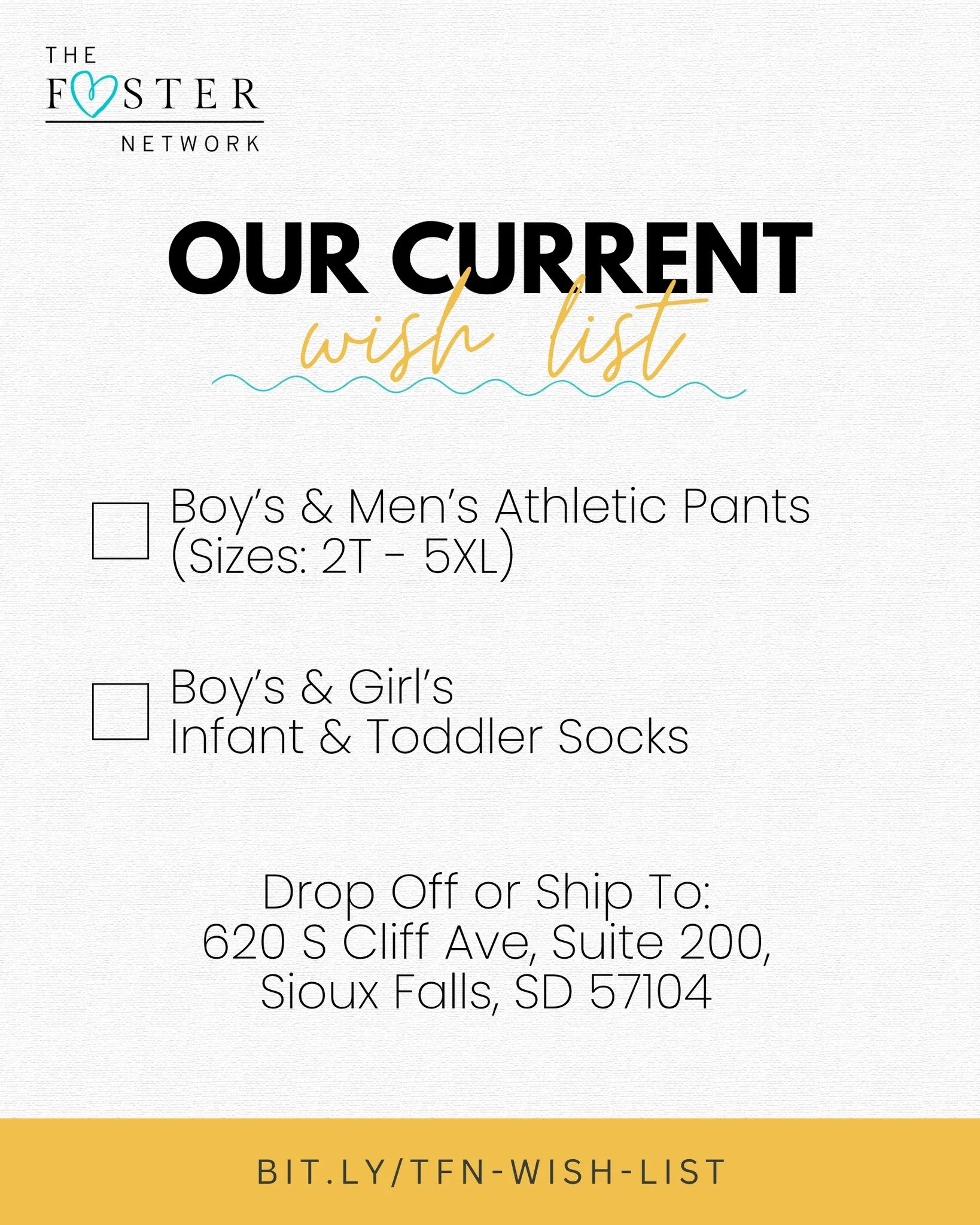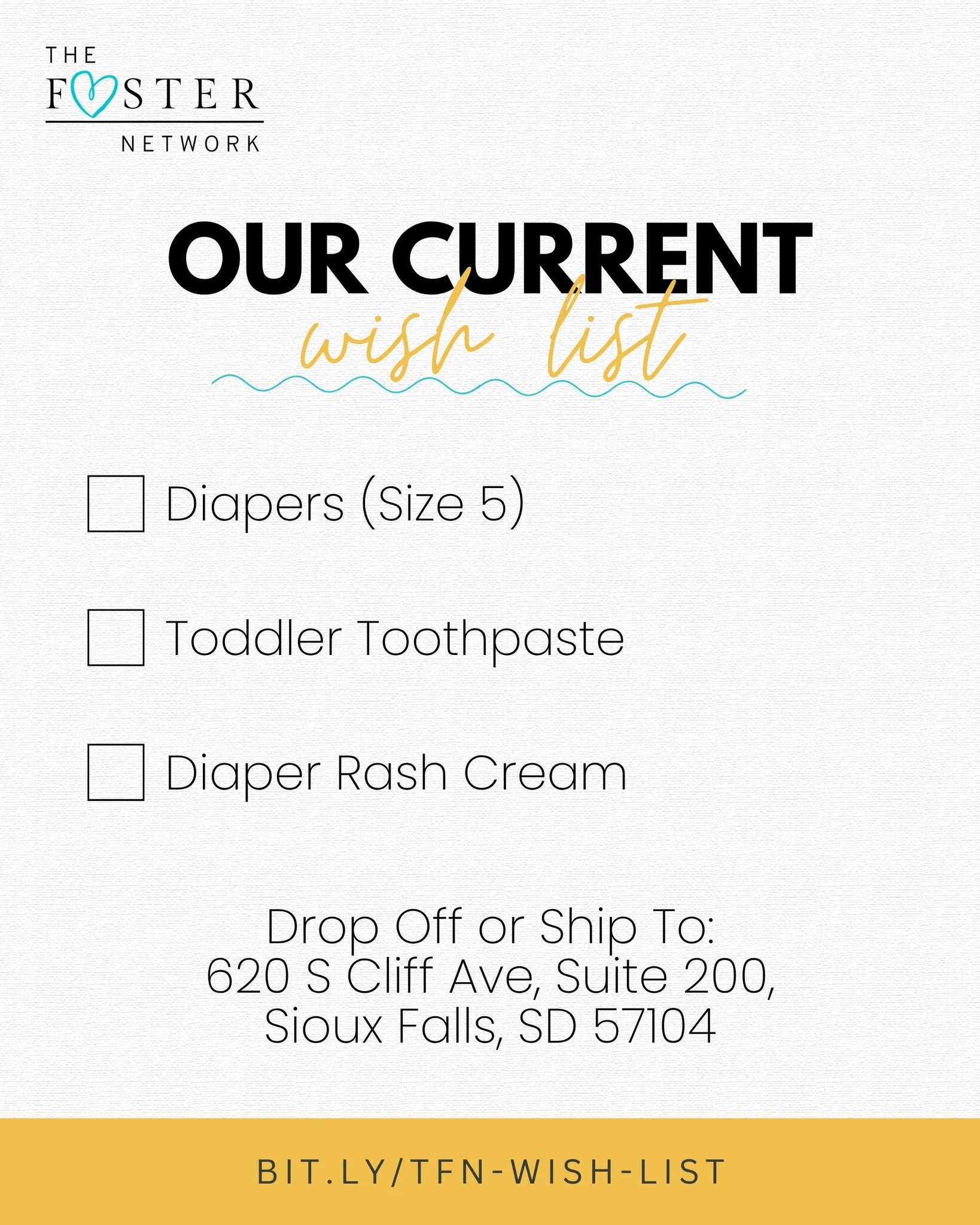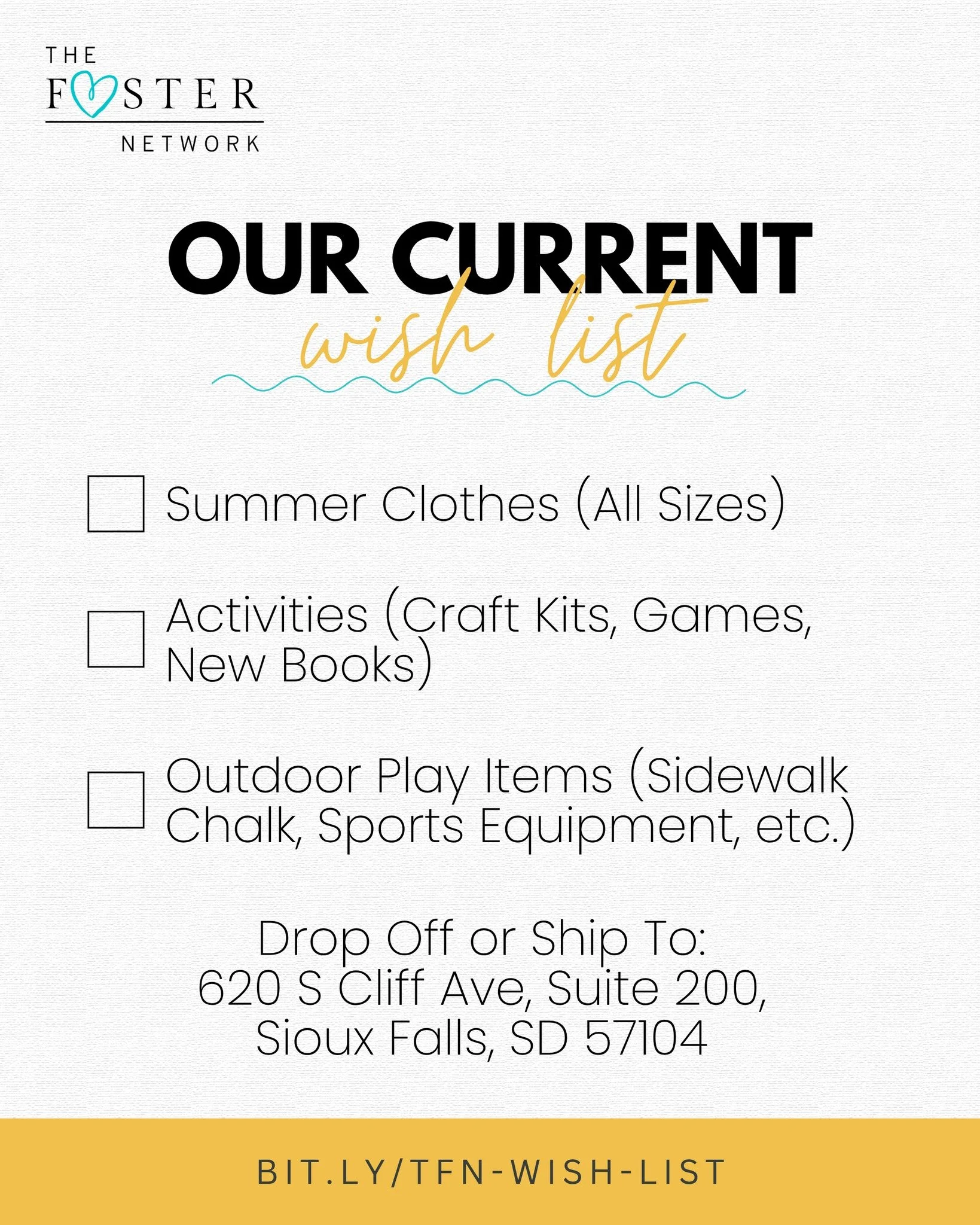 Since our organization began in 2012, The Foster Network has supported local foster families in Sioux Falls, SD, and the surrounding area. We provide essential resources for children in foster care. This includes access to support groups, events, scholarship opportunities, bedroom furniture access, and The Closet, where foster families can receive clothing, supplies, and toys for the children they are fostering. We aim to ensure families have reliable and safe access to the necessary resources to create happy and loving homes.